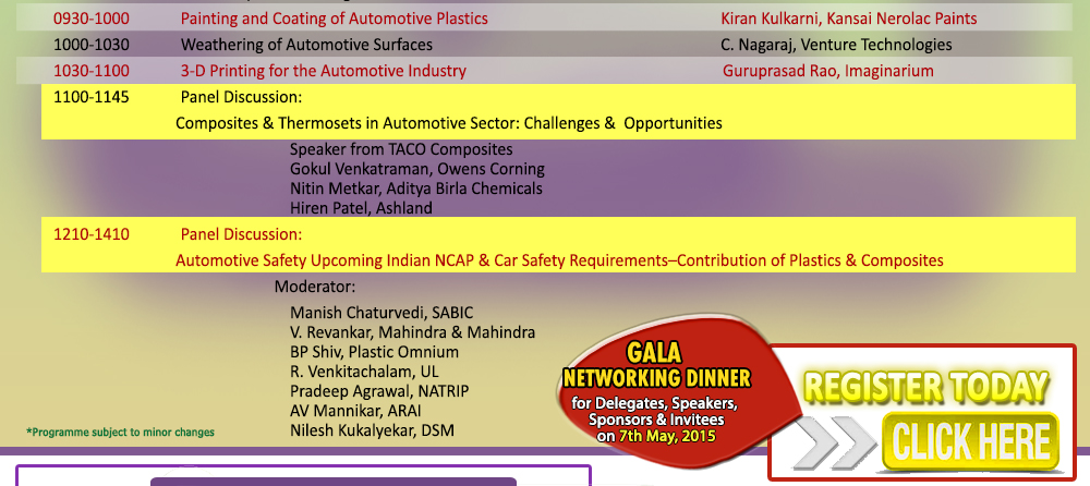 Last chance to engage with Automotive OEMs, Tier-1s and Industry Experts: Plastomotive 2015 Conference: 7-8 May, Pune