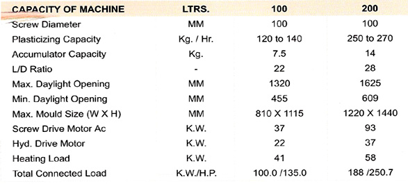 These are suitable for economical production of different Drums, Carboys, Liners for Tin Containers, petrol tanks IBC's and other technical items. The 200 liter machine is a proven one of producing 200 liter 'L' Ring Barrels from HMHDPE, Motorized 'up & down' and 'to & fro' movements of the clamping unit make it suitable for a wide range of article moulds, Multi-Point Parison control system (optional in 100ltr.) incorporated in the machine gives the cutting edge for quality products.