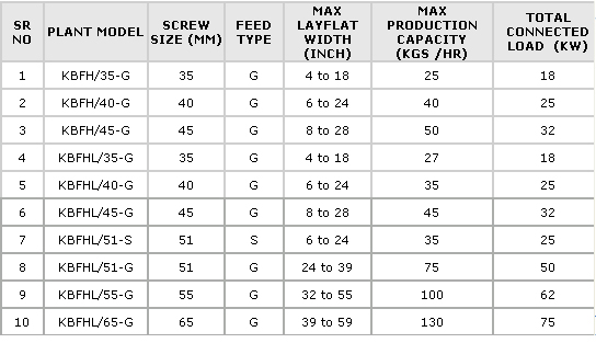 - Specially designed spiral type die ensuring uniform flow distribution with better thickness control