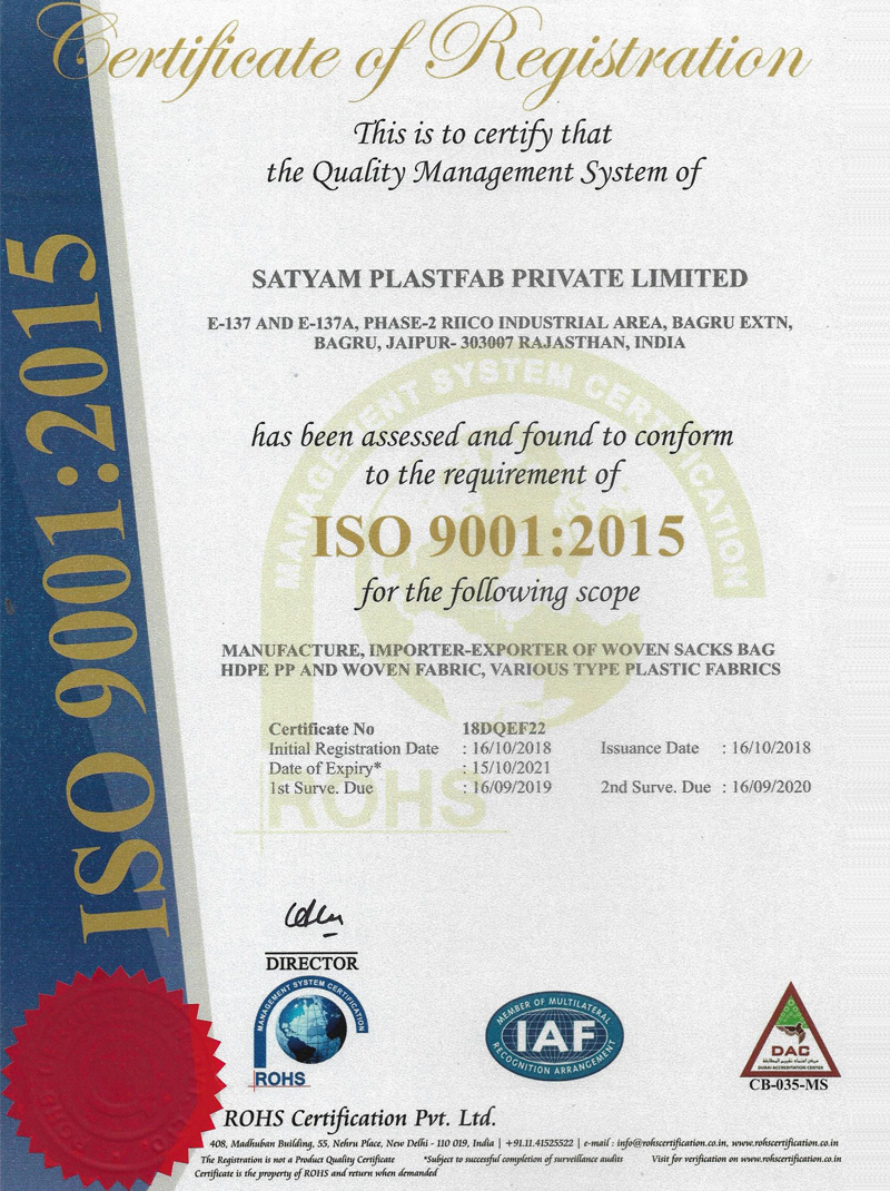Our professionals at Satyam Plastfab Pvt. Ltd take special pains to manufacture PP/HDPE woven sacks depending on the specific and detail-oriented requirements of the customer. During the manufacturing process, we utilize the highest and most superlative raw materials. This makes certain you obtain high quality final products that withstand all kinds of external factors and situations with ease.